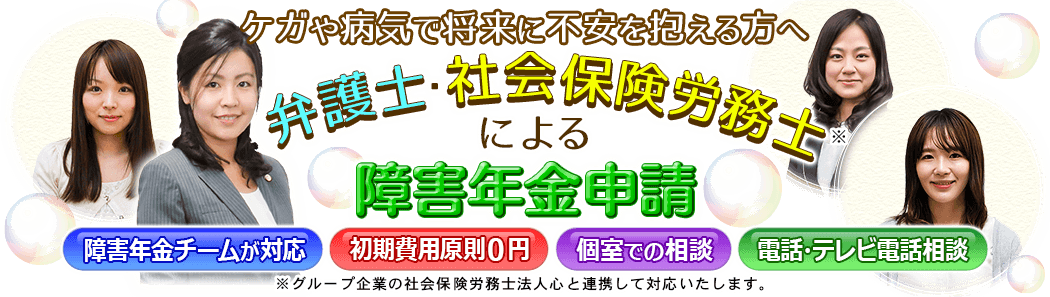 障害年金に詳しい社労士・弁護士が対応いたします。障害年金の申請をお考えでしたら、当事務所までお問い合わせください。
